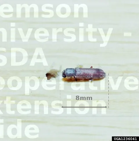 L’adulte est de petite taille, 2 à 3 mm. Il vit 3 à 5 semaines. La femelle pond 20 à 40 œufs dans l’aubier des résineux et feuillus. Le bois de cœur n’est attaqué que pour certaines espèces non durables, en cas d’humidité (minimum 10% à 20°C, au mieux 30%) ou d’attaque préalable par les champignons. Le bois utilisé en construction n’est donc normalement pas touché.