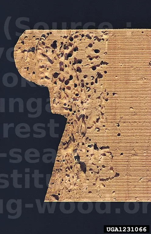 Mais d’autres insectes pondent dans le bois œuvré, sain et sec, dont l’humidité se situe entre 7 et 18%. Les générations peuvent se succéder jusqu’à destruction totale de la pièce de bois.
