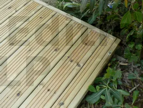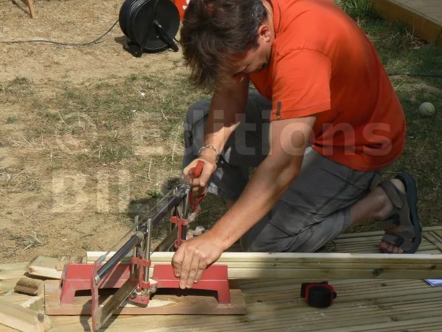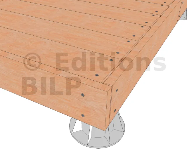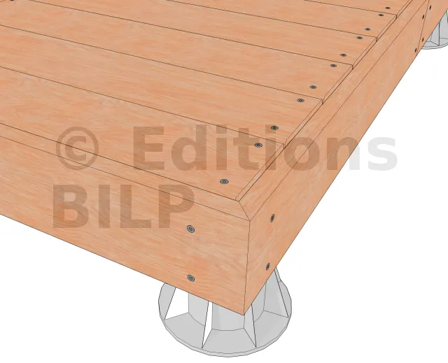 Cette disposition permet de masquer d’éventuels défauts d’alignement du platelage. Les planches étant bien rectilignes, le rebord est ainsi souligné avantageusement.