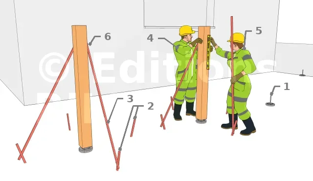 - 5 : Pendant qu’un autre fait le niveau vertical sur deux faces orthogonales