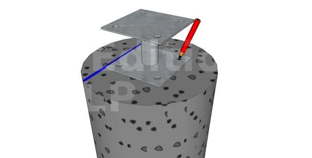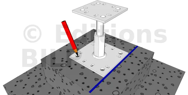 Tracer les emplacements des trous sur des pieds de poteau sur les plots en béton