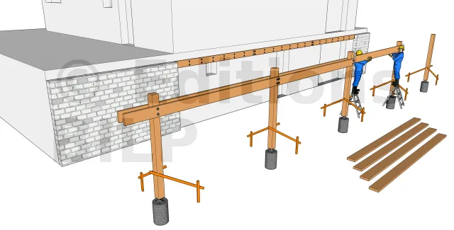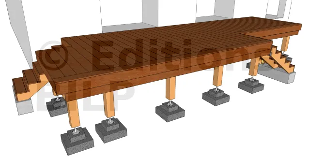 Pour la mise en oeuvre d’une terrasse en bois sur pilotis ayant 2 ou plusieurs lignes de poteau, il est recommandé voir INDISPENSABLE d’avoir recours à des