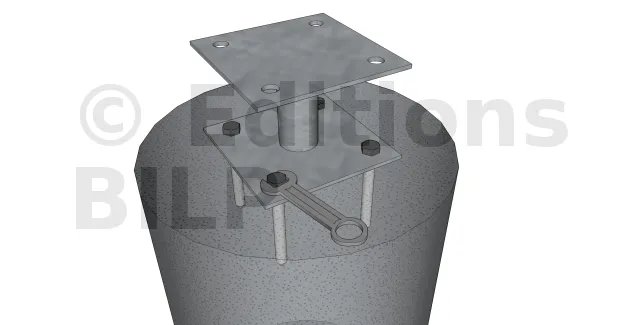 Les possibilités de fixation des pieds de poteau sur les plots en béton