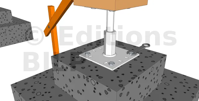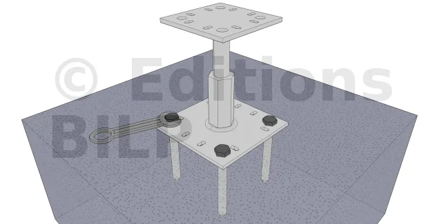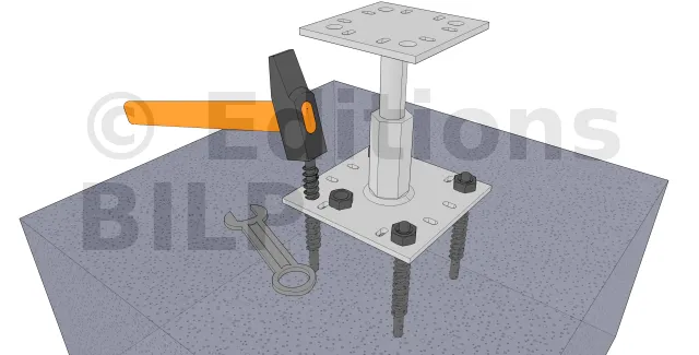 En effet, les pieds de poteaux réglables de type PPRC sont réglables même après la pose avec une clé, en charge.