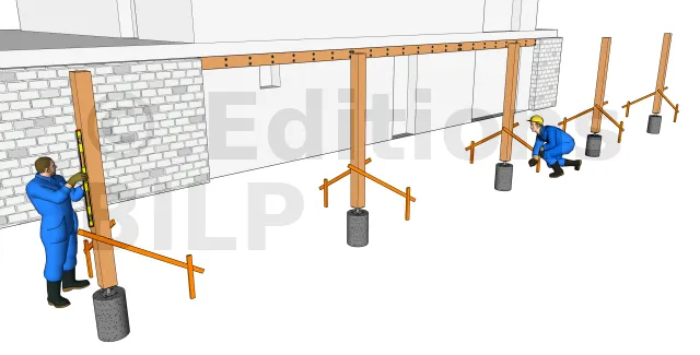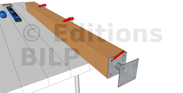 poutres porteuses. Durant cette opération, il est très important de vérifier la verticalité du poteau avec le niveau à bulle ainsi que son alignement. Pour maintenir sa position, il faudra