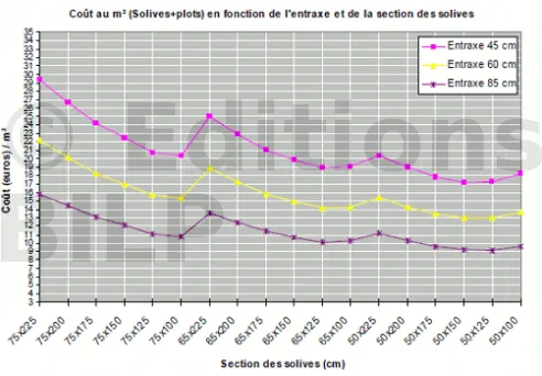 - Si vous pouvez vous approvisionner en bois pour des tarifs très avantageux (un copain scieur, vous habitez en région forestière, ou vous êtes propriétaire de forêts), alors n’hésitez pas à prendre des grosses sections de poutres et solives, vous diminuerez ainsi le nombre de plots.