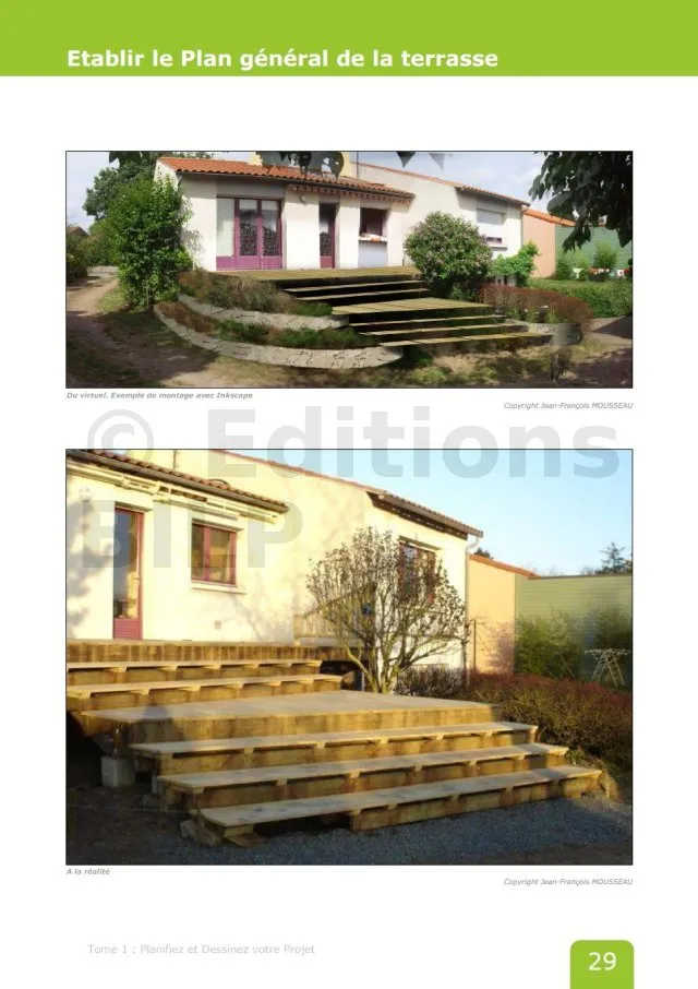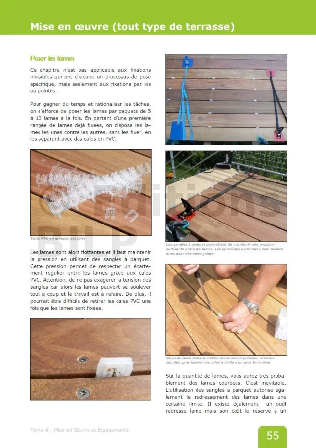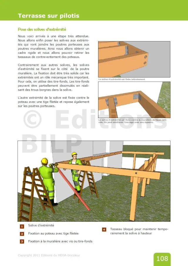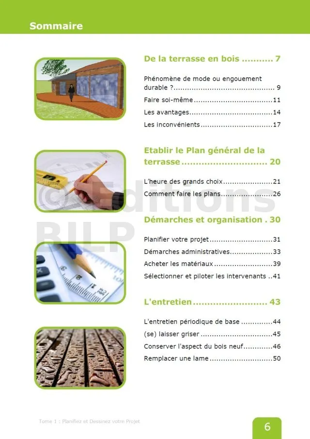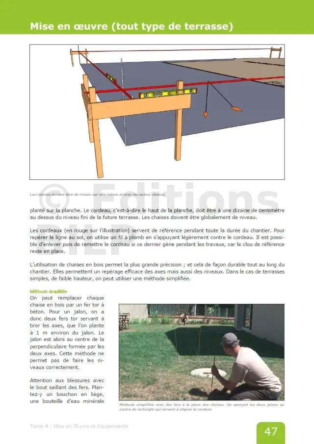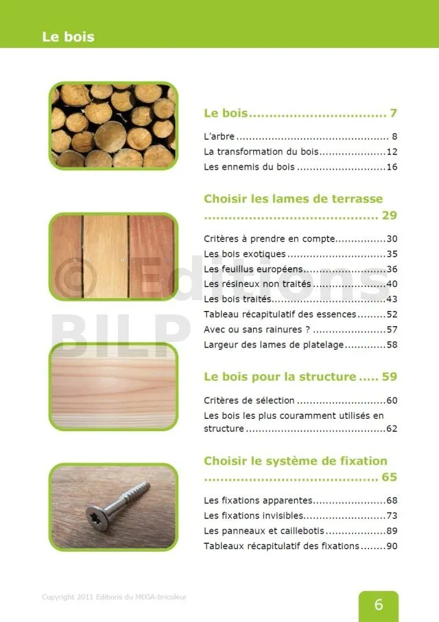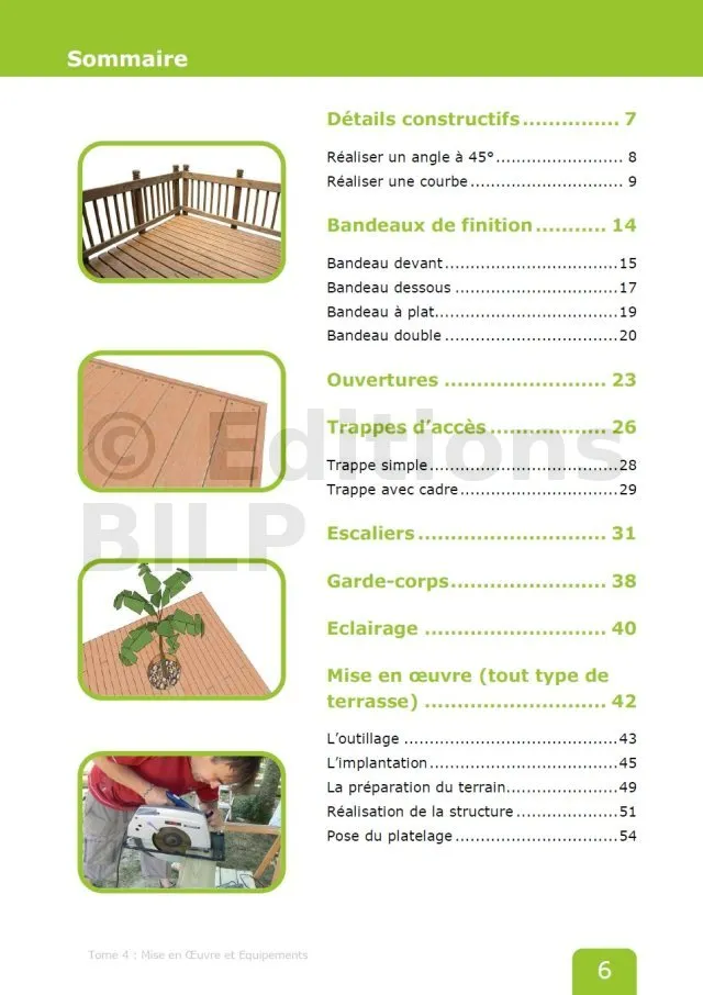 Toutes les techniques de pose et de matériels sont proposés et expliqués avec photo à l’appui. L’accés au base de calcul pour la pose plot et lambourde est très faciles et aide beaucoup pour la construction.