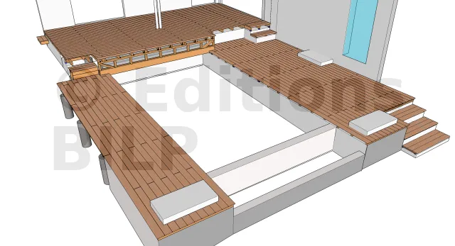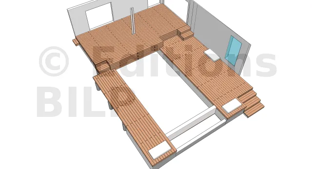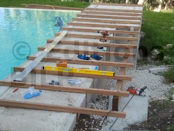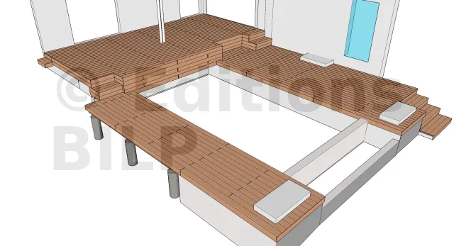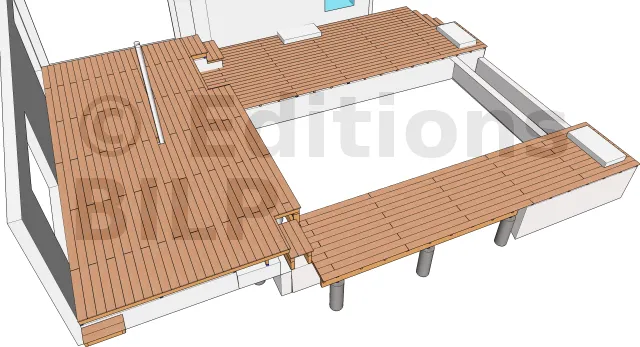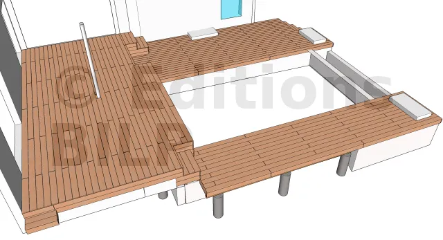 Comme pour les lames de platelage, les bandeaux de finition sont fixées par des vis INOX.