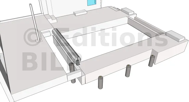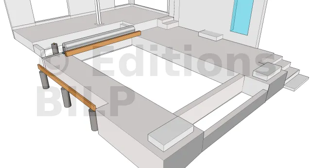Il a été nécessaire de réaliser des plots en béton pour atteindre la hauteur des dalles en béton dans certaine partie de la construction.