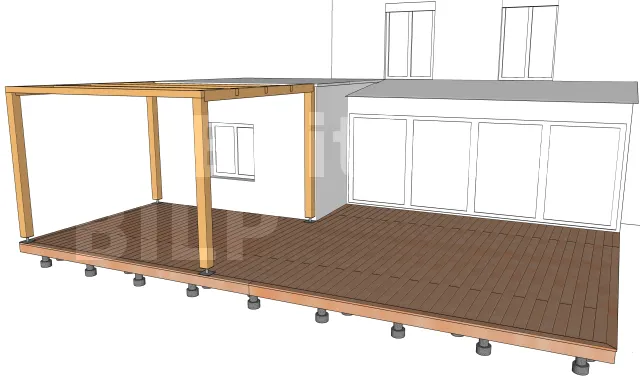 La création du porte à faux se fait en décalant vers l’intérieur d’une dizaine de centimètres les plots périphériques dans le but de les dissimuler au maximum afin de donner un côté aérien à la terrasse.