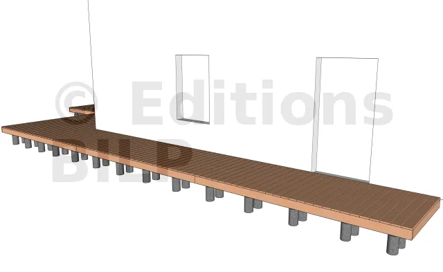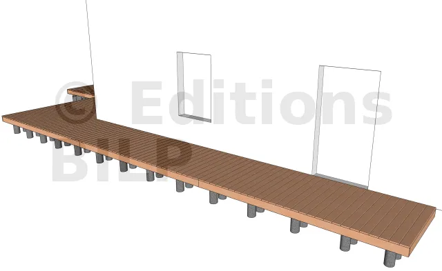 L’emplacement exacte des plots maçonnés est obtenu après avoir dimensionné les éléments constituants la terrasse notamment l’entraxe maximum entre les supports et la portée des lambourdes.
