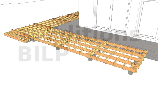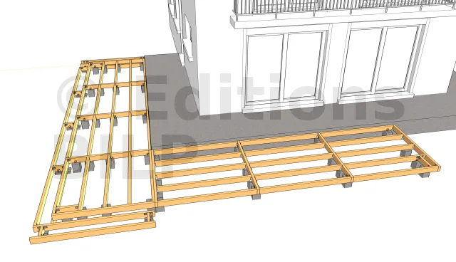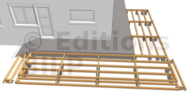 La mise en place des lambourdes recevant les lames de terrasse et les planches de rive 1