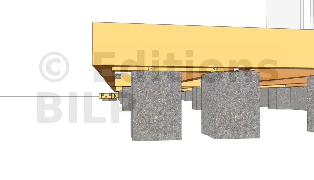 Détails des fixations des poutres porteuses sur le plot en béton