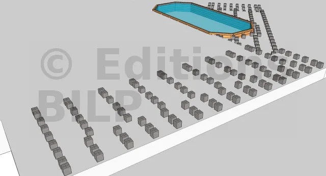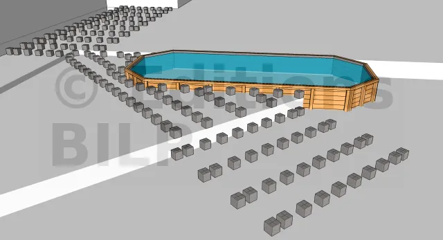 La margelle souligne les contours de la piscine. Elle est posée directement au-dessus des cales en plastique où on la fixe avec des vis INOX.