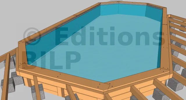 Il est possible de mettre en place une alèse en bois sur le profilé d’accrochage mais en raison de sa faible épaisseur et de son élancement, le bois risque de pourrir très rapidement. De ce fait, la solution la plus appropriée est d’avoir recours à des cales en plastique pour compenser la différence de hauteur du profilé pour que la margelle soit bien plane et du même coup favoriser l’aération.