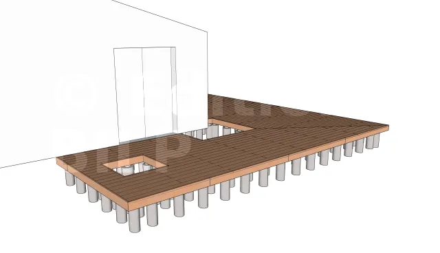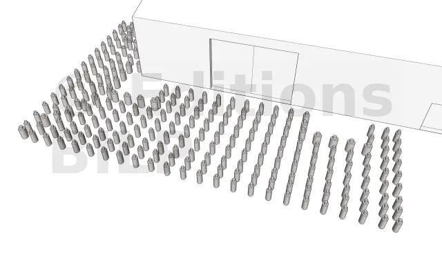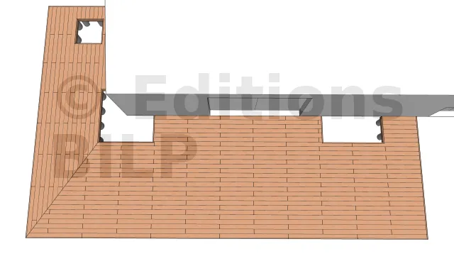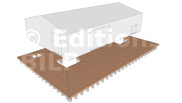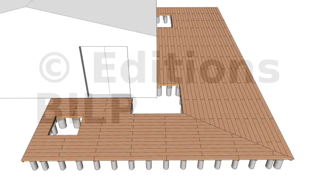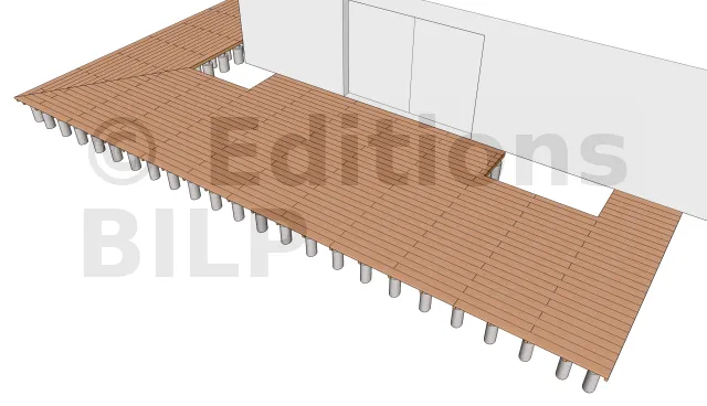 Pour l’esthétisme de la terrasse, nous avons voulu donner un côté aérien à cette dernière et dissimuler au maximum les plots. Ainsi, nous avons décalé vers l’intérieur les plots périphériques d’une quinzaine de centimètres.
