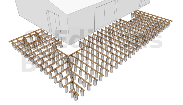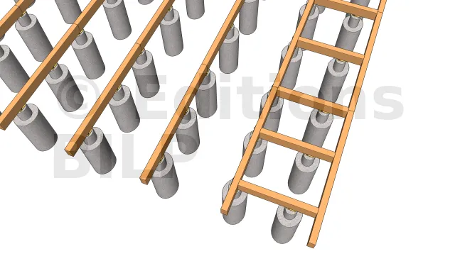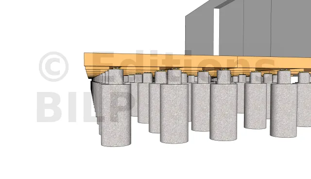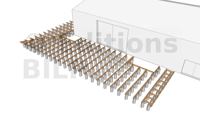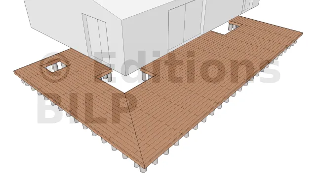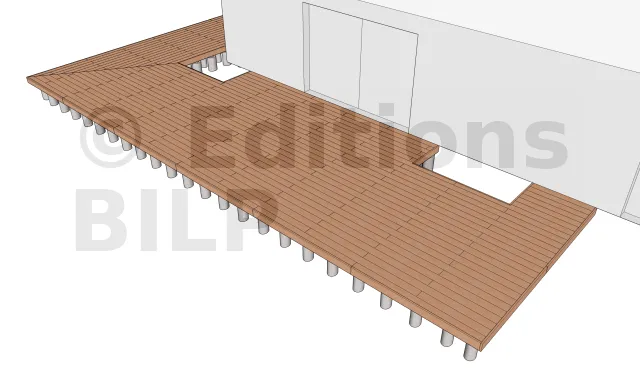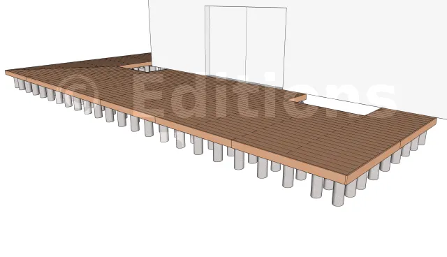 Les plots maçonnés sont répartis en fonction des résultats obtenus après le dimensionnement des pièces de la terrasse notamment l’entraxe maximum entre les supports et la portée des lambourdes.