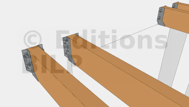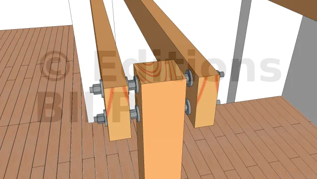 L’espace entre la poutre et le poteau permet l’aménagement d’une ventilation et évite la stagnation de l’eau. Il peut être réalisé soit à l’aide de cales larges à charge lourde ou avec des écrous et rondelles de charpente
