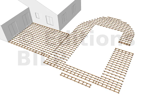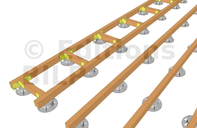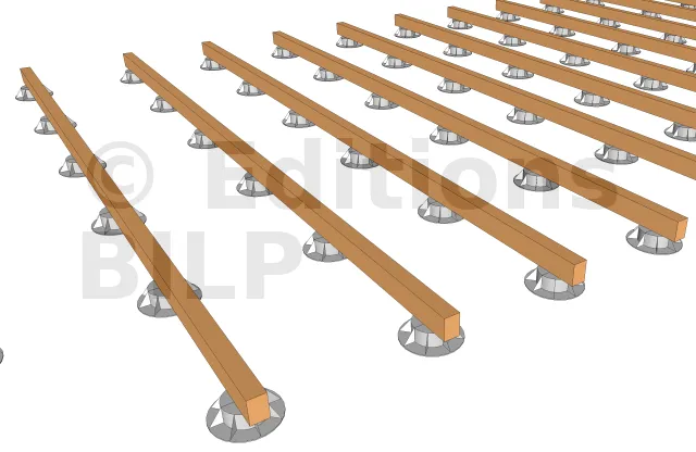 Détails de pose des solives sur les plots
