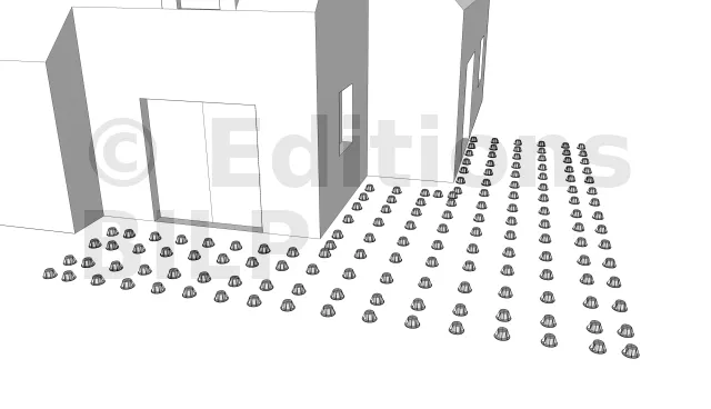 Généralement les entretoises ont pour but de relier deux éléments avec un écartement fixe. Mais dans notre cas, elle nous permet également de placer les plots de bordure un peu plus vers l’intérieur de la terrasse afin de faciliter la pose des bandeaux de finition.