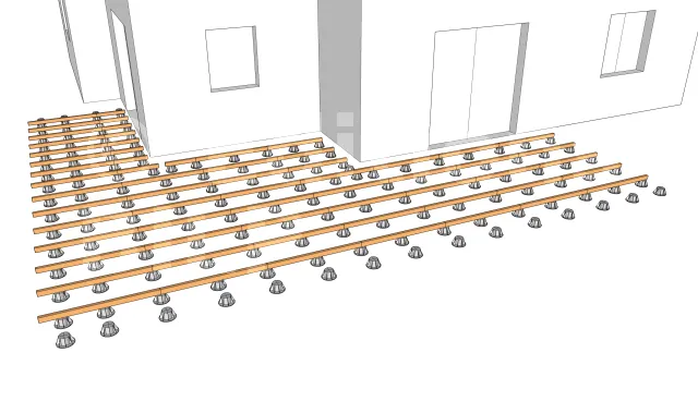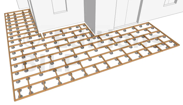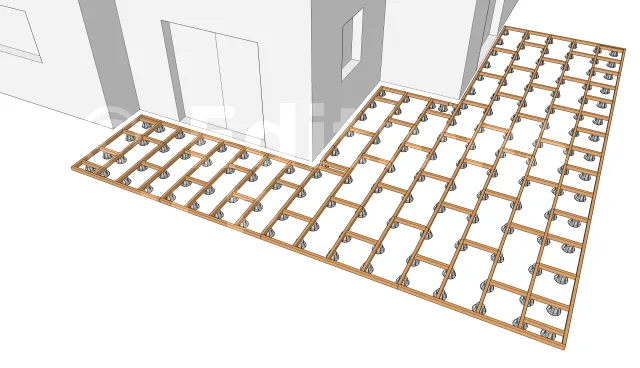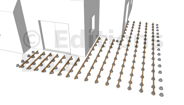 Les entretoises peuvent être fixées au lambourdes par des équerres que l’on fixe par la suite par des vis ou des tirefonds.