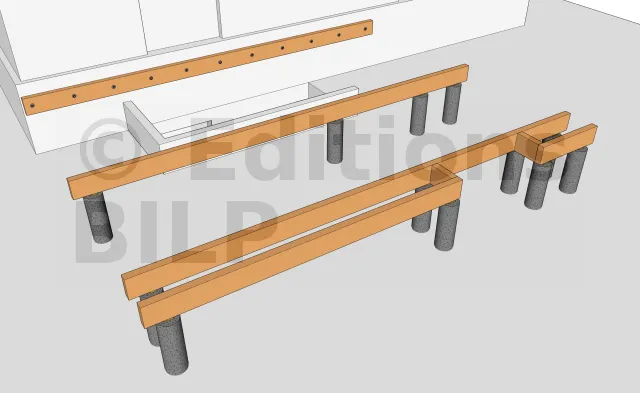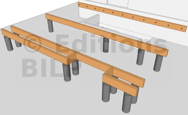 Fixation des poutres porteuses sur les plots 2
