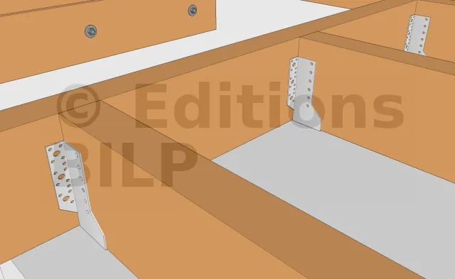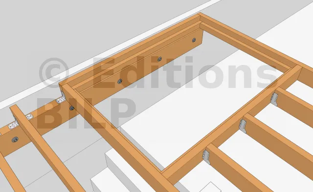 Sur ce projet, la fixation des solives a été faite avec des équerres renforcées qui peuvent être fixées avec des pointes annelées ou des vis connecteurs.