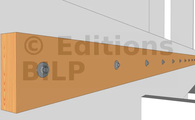 La fixation de la poutre muralière peut se faire par scellement chimique des tiges filetées ou par des vis d’ancrage MULTI-MONTI TimberConnect.