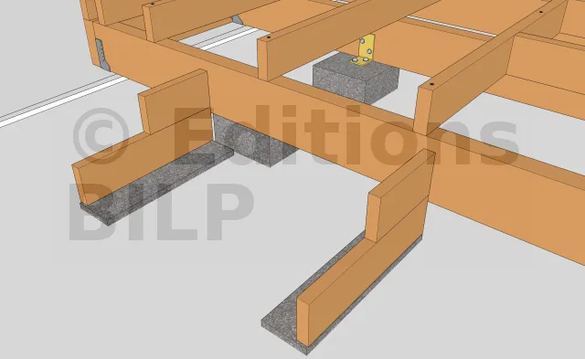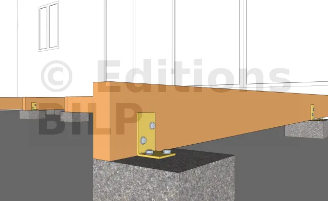 Détails des fixations des poutres porteuses sur les plots en béton