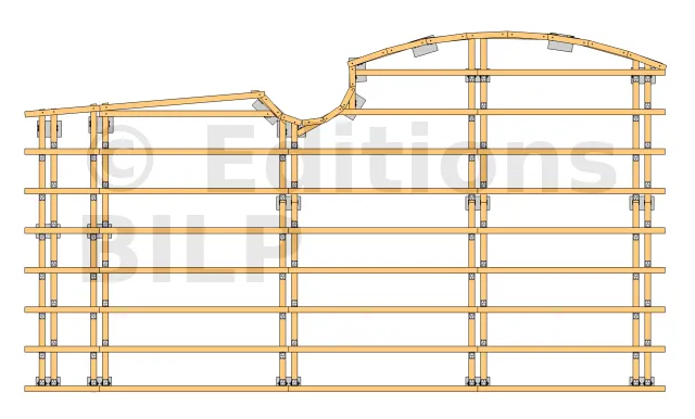 Par contre, les solives en périphéries pour la réalisation de la courbe ont été fixées avec des vis CombiConnect qui seront fixées par le dessus des solives.