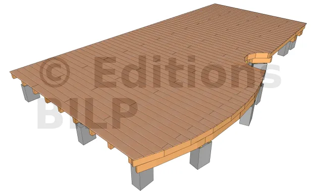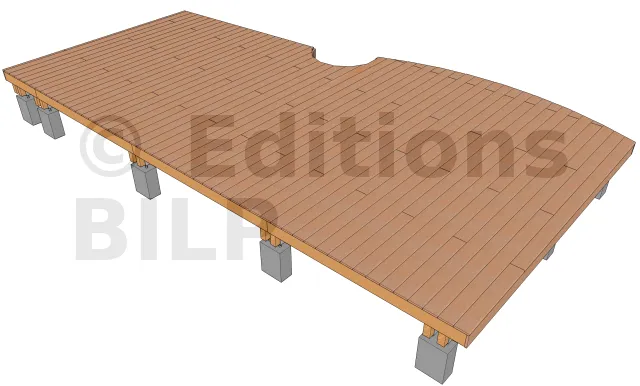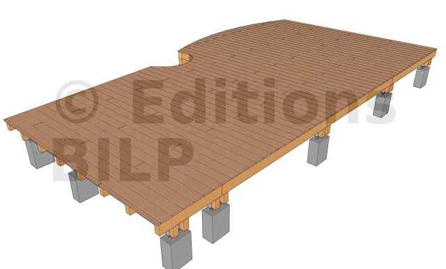 Les plots en béton sont répartis en fonction de la conception et des dimensions des divers éléments constituants la terrasse comme l’entraxe maximum entre les supports, la portée et la section des solives ainsi que la portée des poutres porteuses.