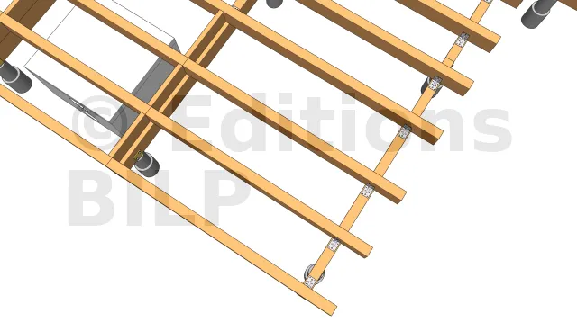 Deux choix s’offrent à vous : Soit la fixation avec des équerres tels que des équerres renforcées ou des équerres simples qui seront fixées avec des pointes annelées ou des vis connecteurs. Soit l’utilisation des vis CombiConnect qui seront fixées par le dessus des solives.