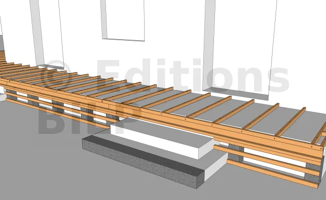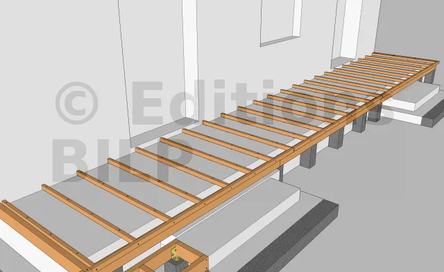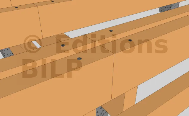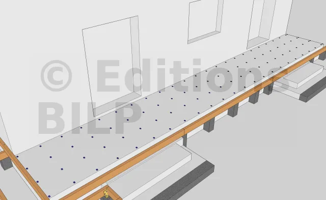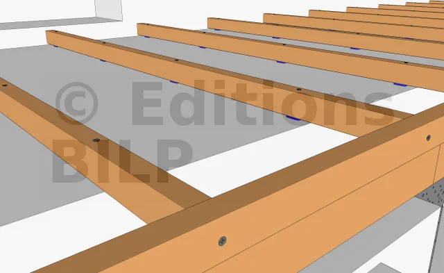 Par contre, la fixation aux poutres porteuses se fait grâce à des pointes annelées ou des tiges filetées que l’on serre avec des écrous et des rondelles.