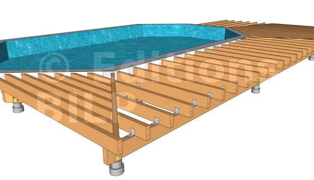 Pour commencer la mise en œuvre, il est indispensable de réaliser des plots en béton qui serviront d’appui pour les poutres porteuses. Pour avoir plus de détails, vous pouvez consulter la rubrique sur la pose sur plots maçonnés.