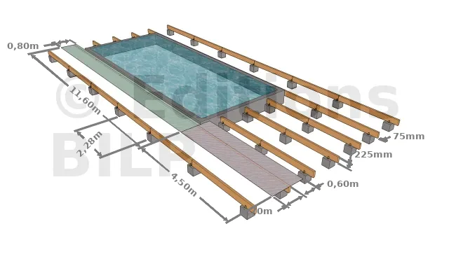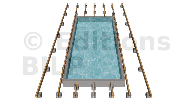 Ainsi, nous avons espacé les plots en béton de 228 cm pour ne pas dépasser la portée Pp.