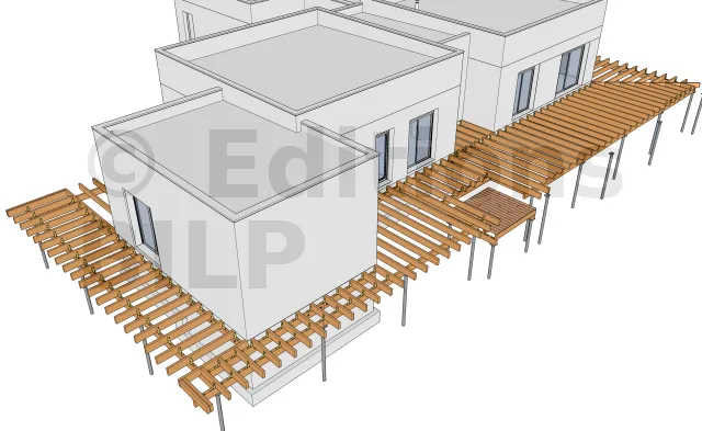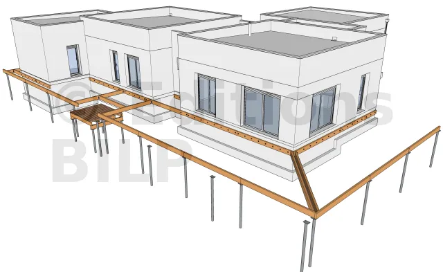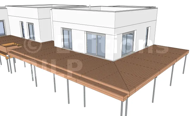 L’emplacement des poteaux métalliques est en fonction de la conception et des dimensions des divers éléments constituants la terrasse comme l’entraxe maximum entre les supports, la portée et la section des solives ainsi que la portée des poutres porteuses.