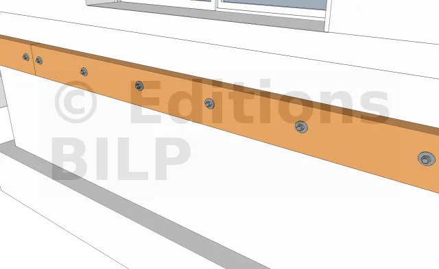 Il existe différents types de bandeau de finition selon la hauteur de la structure à dissimuler.Pour ce projet, nous avons opté pour des bandeaux devant. Leurs fixations se font par l’intermédiaire des vis INOX comme pour les lames.