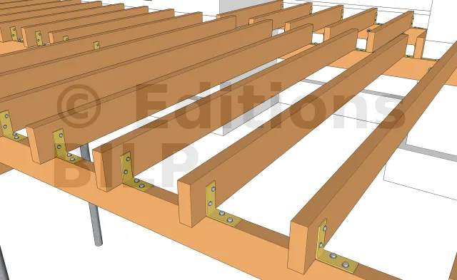 Détails des fixations des solives sur les poutres porteuses