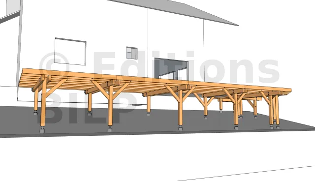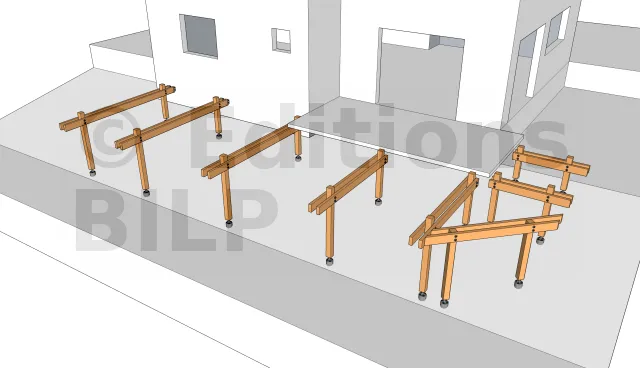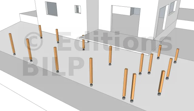 Pour avoir une fondation solide du fait que la terrasse est en hauteur et que le terrain est en pente, il est nécessaire de réaliser des semelles isolées en béton pour l’appui des poteaux.