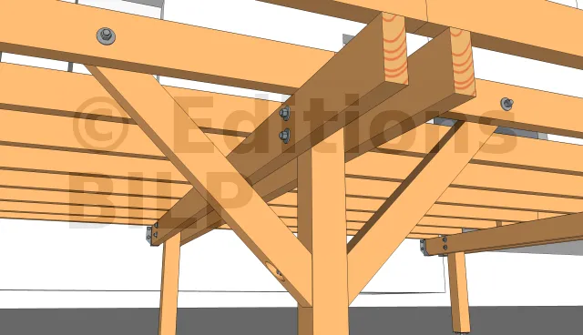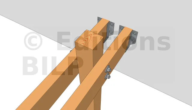 Pour permettre l’aménagement d’une ventilation et éviter la stagnation de l’eau entre la poutre et le poteau, il est important d’y créer un petit espace par l’intermédiaire de cales larges à charge lourde, des écrous ou avec des rondelles.
