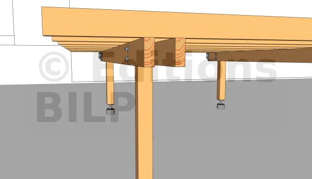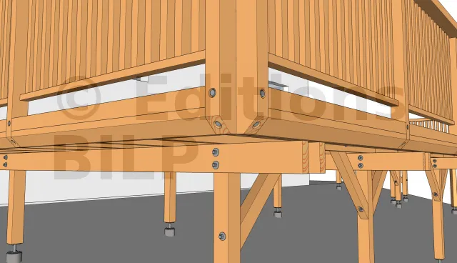 Pour la fixation du garde corps, les écrous sont cachés dans un trou borgne comme pour le contreventement pour un meilleur esthétisme de la terrasse.