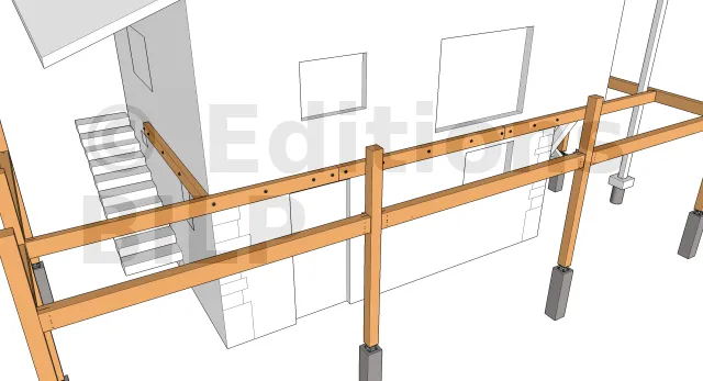 Le montage des poutres porteuses a été fait avec des étriers en âme intérieure par l’intermédiaire de vis et de broche en Inox.