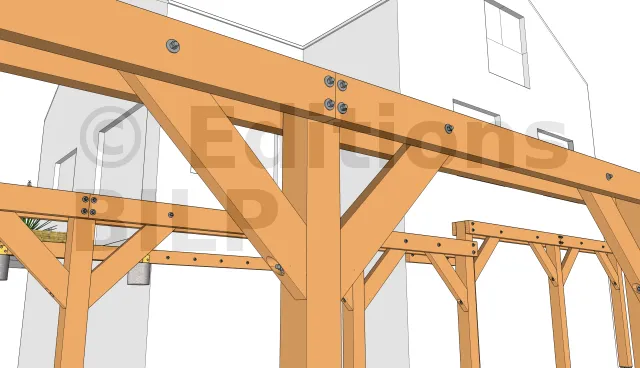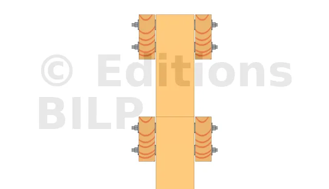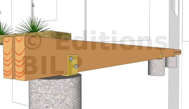 Afin de permettre l’aménagement d’une ventilation et éviter la stagnation de l’eau entre la poutre et le poteau, il est important d’y créer un petit espace par l’intermédiaire de cales larges à charge lourde ou avec des rondelles.