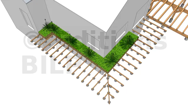 La fixation des lambourdes sur les plots en PVC
