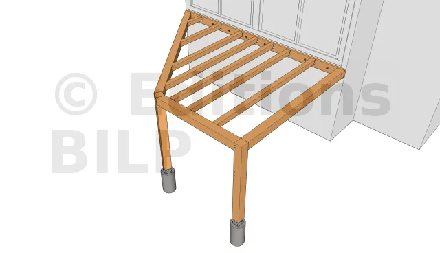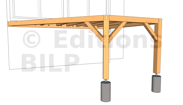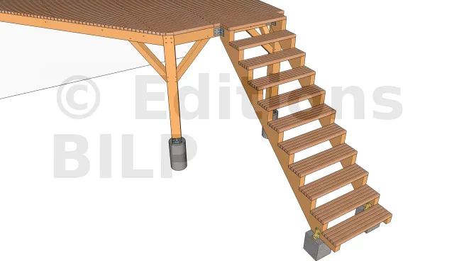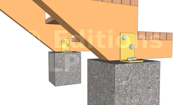 Elles sont fixées aux plots avec des équerres renforcées d’épaisseur 3mm. L’équerre est fixée au plot avec des vis d’ancrage à tête hexagonale et à la crémaillère avec des vis spéciales connecteur ou un tirefond.