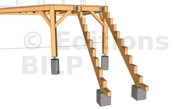 En raison de la hauteur conséquente de la construction, la réalisation des semelles isolées en béton est obligatoire. Ces dernières serviront d’appuis pour les deux poteaux extérieures et les crémaillères de l’escalier.