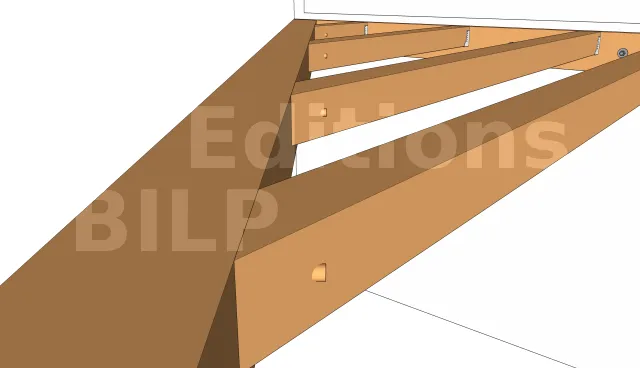La crémaillère est fixée au poutre porteuse avec des équerres simples et des pointes crantées 4,0x35.