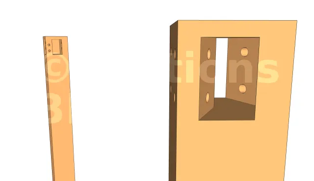 La fixation de la poutre porteuse au poteau se fait par des broches en Inox. Cependant, il a fallu préalablement réaliser des encoches sur les poteaux.